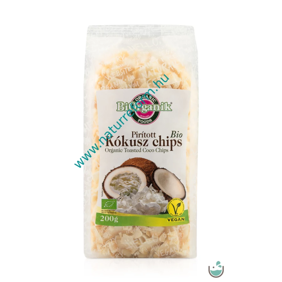 A kókusz chips a legkiválóbb egzotikus aszalványok egyike, vitaminokban és fehérjében gazdag, sokoldalúan felhasználható, így kitűnően alkalmas a reggelik gazdagítására, de önmagában is tökéletes nasi. Különlegessége, hogy a kókuszdió felnyitása után nem szárítják, hanem pirítják, így a kókusz chips még ropogósabbá válik. A bio pirított kókusz chips ökológiailag fenntartható gazdálkodásból származik.
