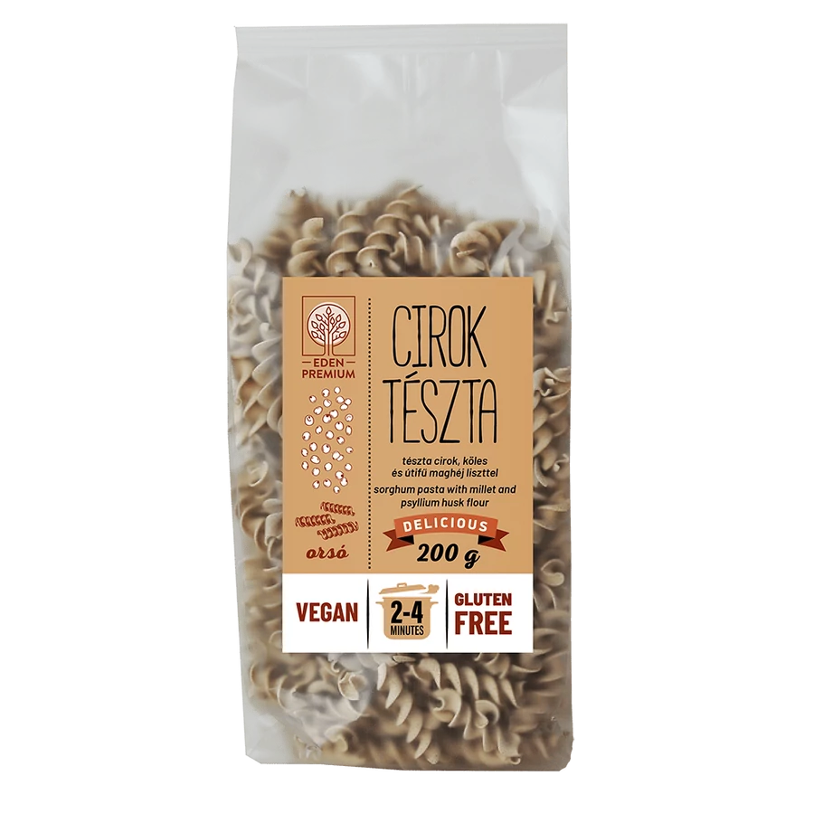 Az orsó ciroktészta kölessel gluténmentes, vegán és nem tartalmaz tojást.