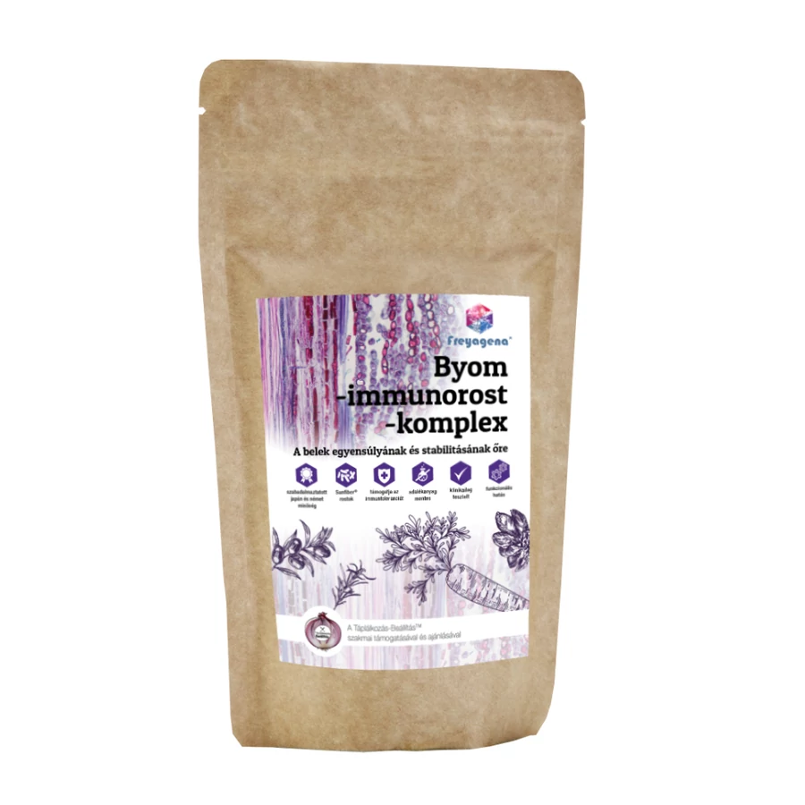 A Freyagena Bio-immunorost komplex készítménye adalékmentes, klinikailag tesztelt termék, mely vízben oldódó rostokat tartalmaz. Más termékekkel ellentétben (mint például az inulin és egyéb oldható rostok) a fermentáció a bélben lassan és kíméletesen zajlik, így elkerülve a kellemetlen puffadás vagy egyéb emésztési panasz megjelenését.