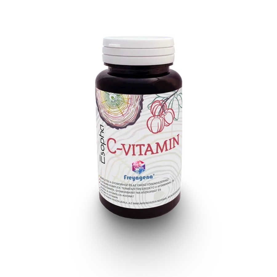 A Freyagena Esopha C-vitamin kiválóan alkalmas antioxidáns védelemre anélkül, hogy gyomorégést (GERD, röviden reflux) okozna, azaz gyomorkímélő, gyomorbarát. Az acerola (cseresznye) gyümölcs kiemelkedő C-vitamin-tartalmán kívül növényi színanyagok (antocianinok) széles skálájában is bővelkedik, amelyek erőteljes “szabadgyökfogók” és természetes szinergiát alkotnak a C-vitaminnal is. Kíméletes a gyomorhoz és az emésztőrendszerhez. C-vitamin komplex: természetes eredetű c-vitaminnal is savközömbös, gyomorbarát na-aszkorbát és acerola gyümölcs-kivonat 800 mg c-vitamin, a c-vitamin hozzájárul az immunrendszer normál működéséhez.