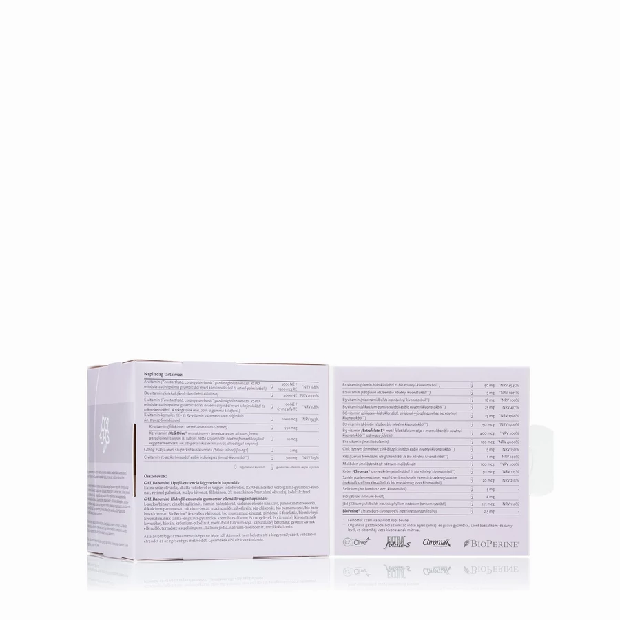 A GAL Babaváró termékünket a legújabb kutatások fényében fejlesztettük ki, szem előtt tartva a természetességet és életszerűséget. Azaz minden vitamint, ásványianyagot, nyomelemet ideális formában, mennyiségben és arányban tartalmaz, nem eltérve attól, ahogyan ezekhez állandó tápanyagdús, változatos táplálkozással juthatnánk. Ezen hatóanyagok mindegyike természetben megtalálható forma, jelentős részük organikus termesztésből származó (bio) gyógy- és fűszernövényekből van kivonva, így azon ko-faktorokból is tartalmaz, amelyek e növényekben aligha véletlenül vannak jelen a bennük lévő vitaminok/ásványok mellett. A mennyiségek esetében végig fontosnak tartottuk, hogy a napi adag biztosan tartalmazza a hatásosnak talált dózist, de semmi esetre se lépje túl az életszerű mennyiségeket, azaz azt a mennyiséget, amit táplálkozással már nem is lehetne fedezni sehogyan sem. Ahol tehát azt látjuk, hogy a termék valamiből az NRV (hivatalosan ajánlott napi bevitel) több száz vagy akár több ezer %-át tartalmazza, nem kell megijedni (pl. egy marék kagyló kb. 2000%-át tartalmazza a hivatalosan ajánlott B12-mennyiségnek, és mégis nagyon is egészséges lenne naponta ennyi kagylót vagy B12-t elfogyasztani). Ez azért van így, mert a hivatalosan ajánlott értéket valójában inkább „az életben maradáshoz feltétlenül szükséges minimális mennyiség”–nek kellene hívni… Az NRV igen ritkán reprezentálja a valóban ideális mennyiséget.