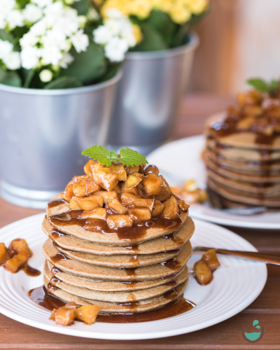A hozzávalókat összeturmixoljuk, majd 5 percig pihentetjük a masszát. Forró tapadásmentes (így nem szükséges kiolajozni a palacsintasütőt) serpenyőben oldalnként kb. 1,5 perc alatt készre sütjük.