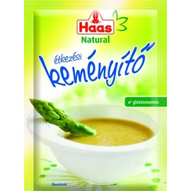 - Fontos: A Haas Natural Étkezési keményítővel sűrített leveseket és mártásokat nem szabad hosszabb ideig főzni, különben a keményítő hatása csökken.