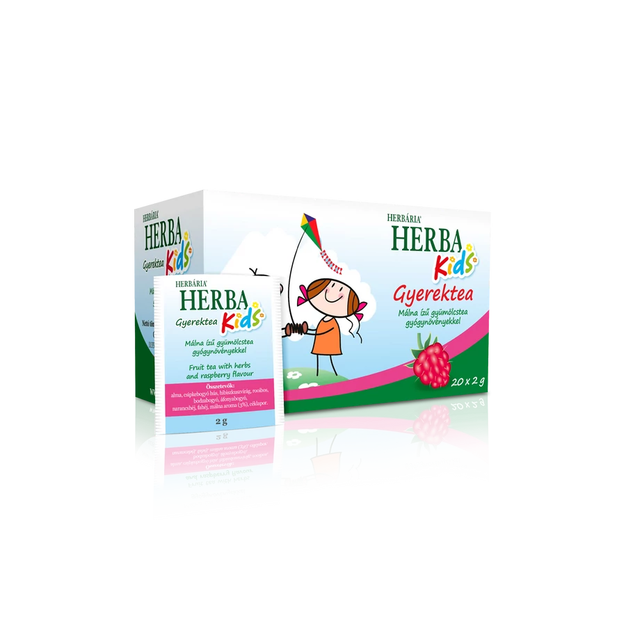 Herba Kids Málna ízű gyümölcstea gyógynövényekkel.