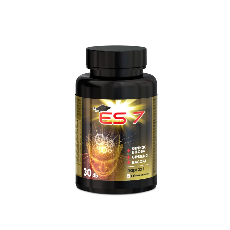 ES7 filmtabletta – Ginkgo bilobát, Ginsenget, Bakopát, Rhodiolát, L-karnitint, lecitint, koffeint, magnéziumot