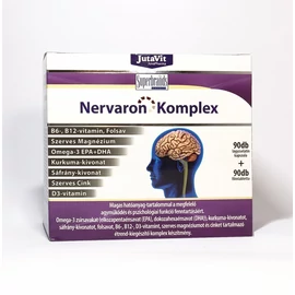 JutaVit Nervaron Komplex, Omega-3 zsírsavakat (eikozapentaénsavat (EPA), dokozahexaénsavat (DHA)), kurkuma-kivonatot, sáfrány-kivonatot, folsavat, B6-, B12-, D3-vitamint, szerves magnéziumot és cinket tartalmazó étrend-kiegészítő komplex készítmény magas hatóanyag-tartalommal a megfelelő agyműködés és pszichológiai funkció fenntartásáért.