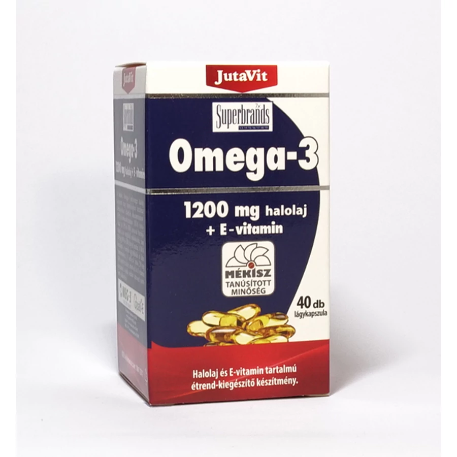 A JutaVit Omega-3 mélytengeri halolaj kapszula nagy mennyiségben tartalmaz többszörösen telítetlen Eikozapenténsav (EPA) és Dokoza-hexénsav (DHA) zsírsavakat. Az EPA és DHA zsírsavak hozzájárulnak a szív megfelelő működéséhez, napi 250mg EPA és DHA bevitel esetén. A DHA hozzájárul a normális agyműködés és látás fenntartásához. A kedvező hatás 250mg DHA napi bevitelével érhető el. Az E-vitamin hozzájárul a sejtek oxidatív stresszel szembeni védelméhez.