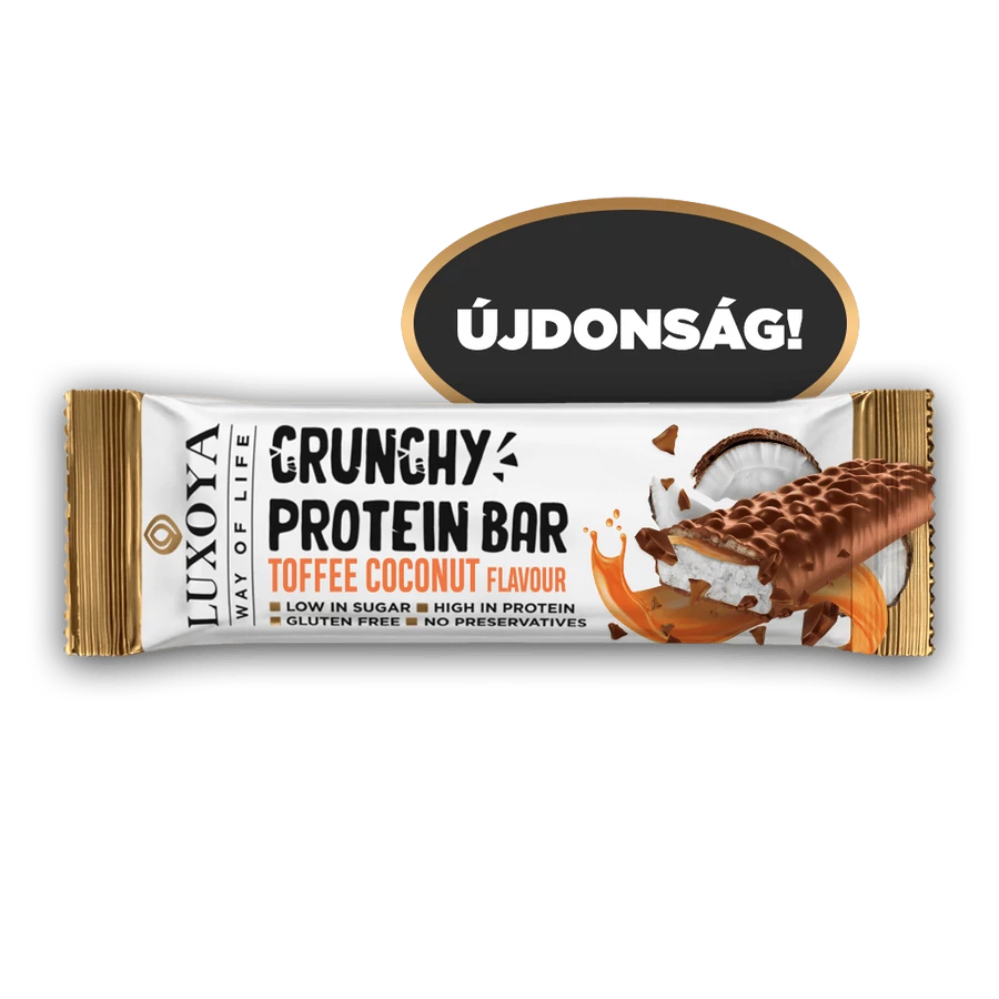LUXOYA CRUNCHY PROTEIN BAR - ROPPANÓS FEHÉRJE SZELET 45 g - Karamella Kókusz ízű