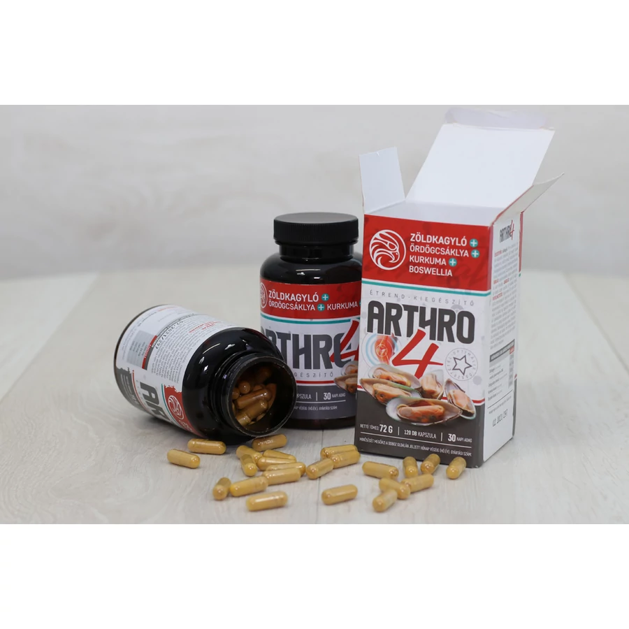 Az Arthro4 egy egyedi összetételű készítmény: Zöldkagyló + ördögcsáklya + kurkuma + boswellia kivonatot tartalmaz.