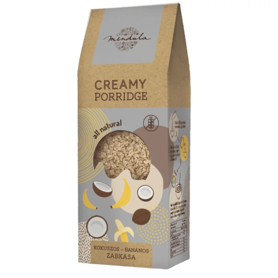 Összetevők: zabpehely, bio nádcukor, kókuszreszelék (10%), liofilizált banán (2%), tengeri só