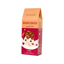 Meggyes granola termékünket a gyümölcsös ízek és granolák rajongóinak készítettük. Savanykás, intenzív ízű, ropogós liofilizált feketeribizli és eper, puha aszalt meggy és enyhén pirított mandula dobja fel a finoman fűszeres granola alapot. Fogyaszd tejbe vagy növényi tejbe szórva, vagy joghurttal és friss gyümölcsökkel megpakolva!