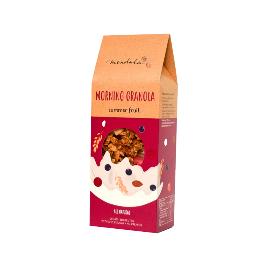 a meggyes granola alapja a gluténmentes zabpehely, amely egész délelőttre feltölt energiával. Almasűrítménnyel és almacukorral édesítjük, egy kevés kókuszolajjal és izgalmas fűszerekkel keverve sütjük csábítóan ropogósra. Napraforgómag, kókuszchips és sok-sok mandula teszi harmonikussá és még tartalmasabbá a keveréket. A végén adjuk hozzá az aszalt meggyet és a liofilizált ribizlit, epret, amelyekből a fagyasztva szárítás során úgy vonják ki a vizet, hogy a vitamin- és mikroelem tartalmuk, illetve friss ízük és színük szinte hiánytalanul megmaradjon. Granolánk nem tartalmaz tartósítószert, cukrot vagy adalékanyagokat, így a legnagyobb nyugalommal adhatod gyermekeidnek is nap, mint nap.