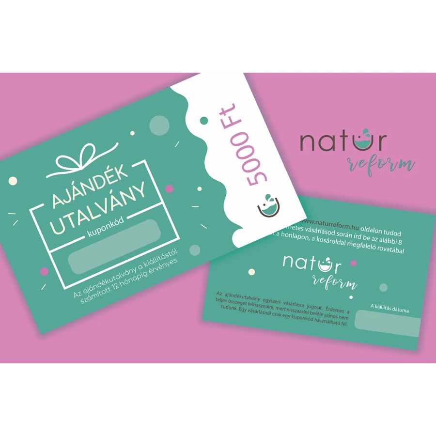 Felhasználás módja: a kártyán található kuponkóddal érvényesíthető a naturreform.hu webáruház pénztár oldalán.