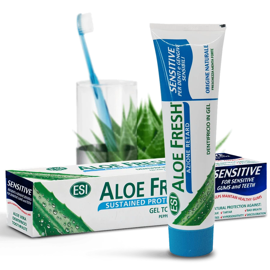 Az Aloe Fresh® Sensitive fogkrém nélkülözi az olyan fogínygyulladást okozó agresszív anyagokat, mint a nátrium-lauril-szulfát melyek különösen jól felszívódik a finom szájüreg-nyálkahártyán, irritálva a felületet. Nem tartalmaz saccharint, mely a fogkrémekben mesterséges édesítőszerként használatos összetevő.