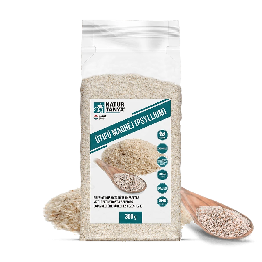 Az útifű maghéj duzzadó rost, ami saját tömegénél 40x több vizet képes felszívni. Ezt a duzzadási képességét a konyhában is jól ki tudjuk használni, sütemények, kenyerek készítésénél, illetve sűrítésnél. A prebiotikus tulajdonságú természetes vízoldékony rost, támogatja a mikrobiomot és a jó emésztést. Alacsony glikémiás index értékkel rendelkezik és diétás étrendbe is könnyedén beilleszthető. Az útifűmaghéj többféle elnevezése is ismert: Plantago ovata, Ispagol, Psyllium, Bolhamag útifű.