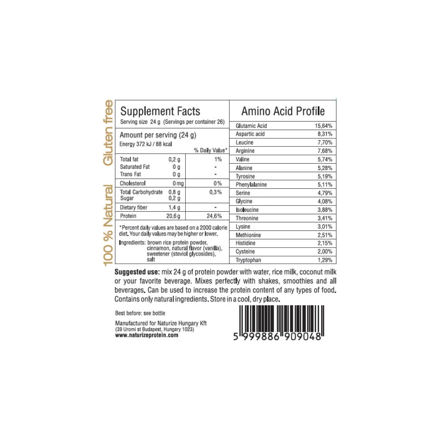 ÚJ NATURIZE® ULTRA SILK 2.0 barnarizs-fehérjepor izolátum – fahéjas ízben (86% fehérje). 620g/doboz, 26 adag/doboz