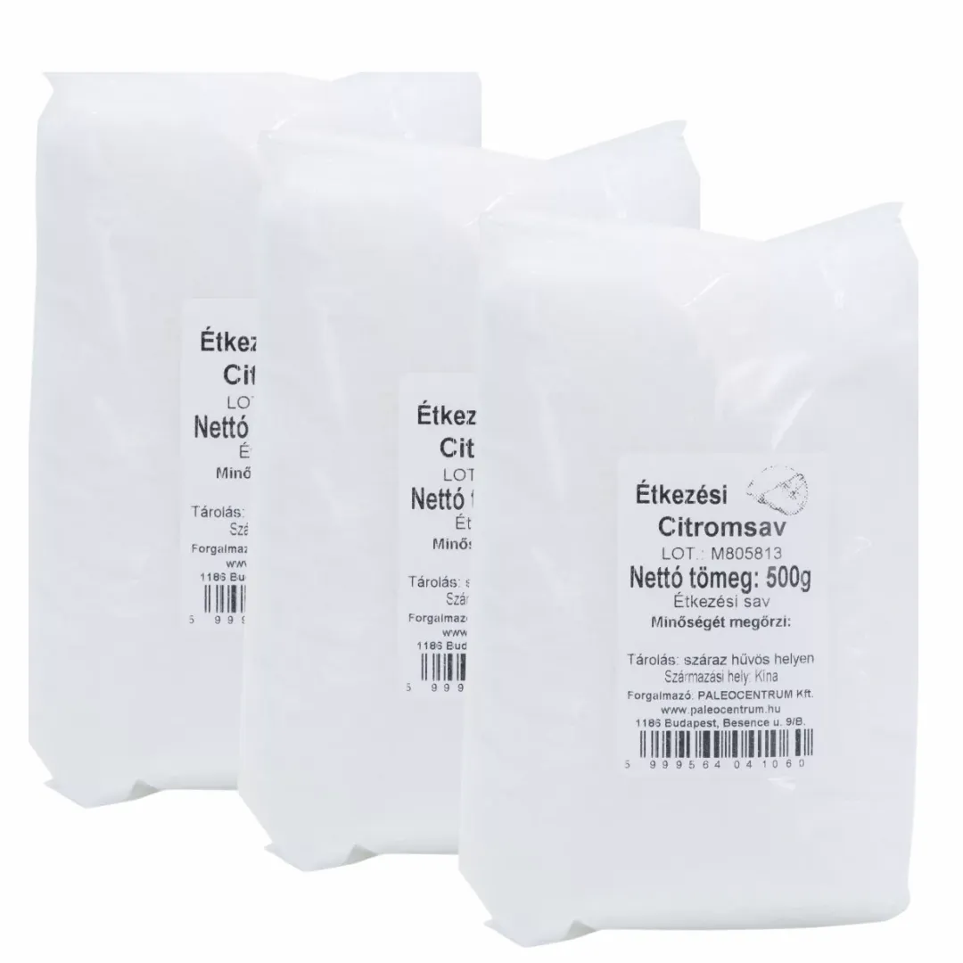 Ez a csomagajánlat három darab 500 g-os Paleolit Citromsavat tartalmaz, így összesen 1500 g mennyiséget kapsz egyben.