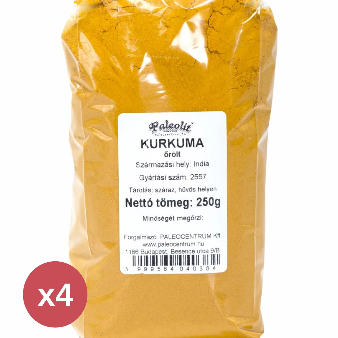 Ez a csomagajánlat négy darab, egyenként 250 g-os Paleolit Kurkuma őrölt kiszerelést tartalmaz, összesen 1000 g mennyiségben.