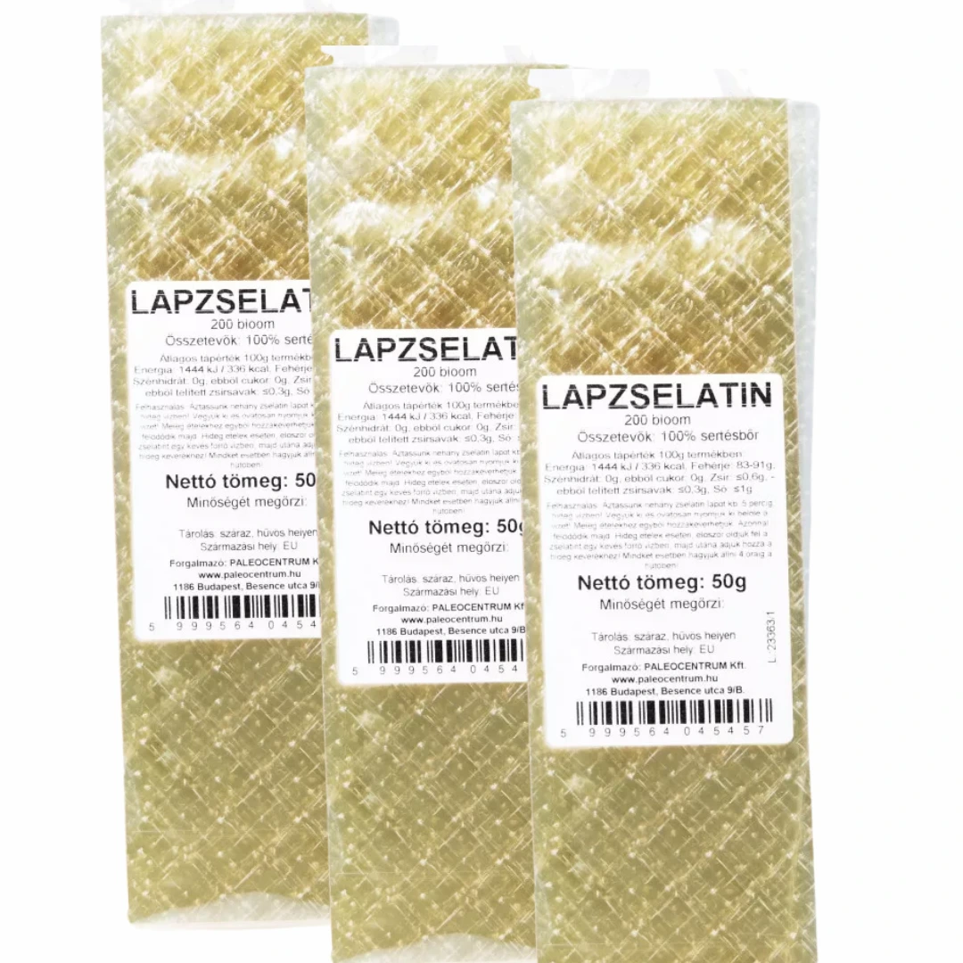 Felhasználás: Áztassunk néhány zselatin lapot kb. 5 percig hideg vízben! Vegyük ki és óvatosan nyomjuk ki belőle a vizet. Meleg ételekhez egyből hozzákeverhetjük. Azonnal feloldódik majd. Hideg ételek esetén, először oldjuk fel a zselatint egy kevés forró vízben, majd utána adjuk hozzá a hideg keverékhez. Mindkét esetben hagyjuk állni 4 óráig a hűtőben.