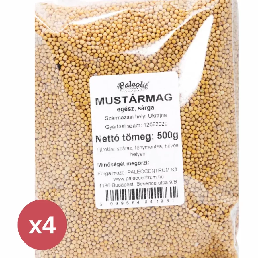 A Paleolit Mustármag egész sárga 4x500 g egy csomagajánlat, amely nagyobb mennyiségben kínálja a karakteres ízű, sokoldalúan felhasználható fűszert.
