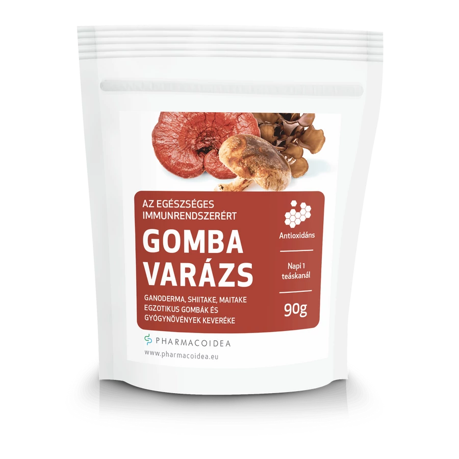 - Gyógygombák (ganoderma, shiitake, maitake), gyógynövény kivonatok (cékla, máriatövis, vörös szőlőmag, kurkuma, gyömbér) és C-vitamin komplex keveréke