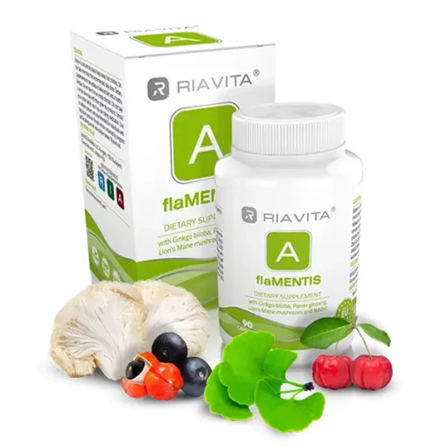 A RIAVITA flaMENTIS kapszula 90 darabos kiszerelésben természetes eredetű flavonoidokat, polifenolokat és gondosan válogatott növényi kivonatokat tartalmaz. Ezek az összetevők támogatják az agyműködést, segíthetik a koncentrációt, memóriát és kognitív funkciókat, így hozzájárulnak a mentális frissesség megőrzéséhez. Antioxidáns hatásuk révén védelmet nyújtanak a sejteknek az oxidatív stresszel szemben. Napi szedése célzott támogatást nyújt a szellemi teljesítmény fenntartásához.