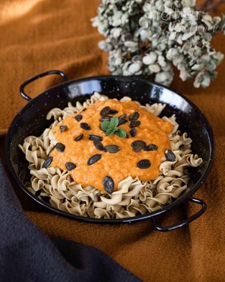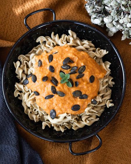 Tálald az ételt melegen. A tetejét szórd meg tökmaggal.