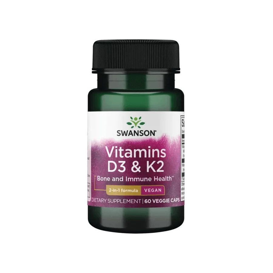Swanson D3 + K2 vitaminok - 60 db növényi (vegán) kapszula