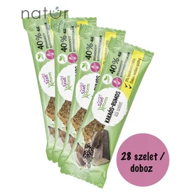 Kakaós-Rumos ízű szelet finom, ropogós étcsokoládéba mártva. Kizárólag gluténmentes, vegán és paleo összetevőket tartalmaz. Szénhidráttartalma 40%-kal csökkentett. Hozzáadott cukrot nem tartalmaz. Ételérzékenyek, diétázók és cukorbetegek is bátran fogyaszthatják.