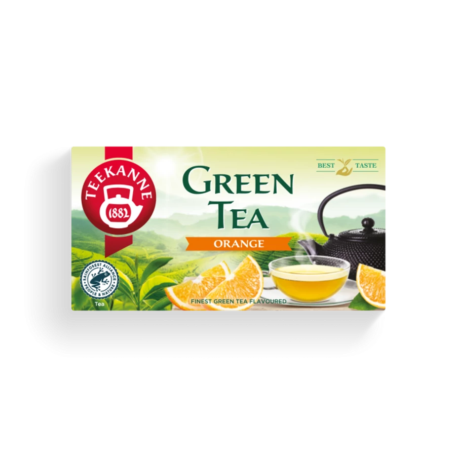 Kóstold meg a Teekanne Green Tea Orange kiváló ízét és élénkítő erejét. A zöld tea hagyományos kínai gyökereivel, már évezredek óta ismert mint a jó közérzet forrása. Ez a kellemes tea specialitás ötvözi a gondosan kiválogatott zöld tea levelek finom zamatát a gyümölcsös narancs ízzel.