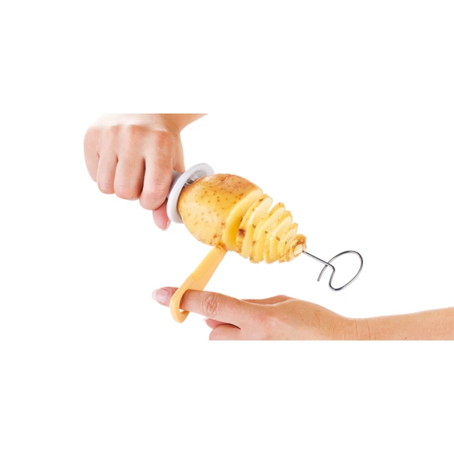Kiváló eredeti burgonyaspirál készítésére. A készlet tartalmaz 4 rozsdamentes acéltűt burgonyaspirál sütésére és kirántására. A spirálvágó és a tömör fogantyú ellenálló műanyagból készült. Mosogatógépben való tisztításra alkalmas. 3 év garancia.