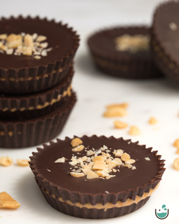 A kókuszolajat és az étcsokoládét vízgőz felett felolvasztjuk, majd a felét eloszlatjuk 6 db muffinformában. Pár percre hűtőbe vagy fagyasztóba tesszük a formákat, amíg a csoki megdermed, ezután mindegyikre teszünk 1 tk. mogyoróvajat, a tetejükön pedig eloszlatjuk a maradék csokoládét. Visszatesszük a hűtőbe a formákat, ha félig megdermedt a csokoládé, akkor apróára vágott mogyoróval/ kókuszreszelékkel vagy liofilzált gyümölcsökkel díszítjük és visszatesszük további 15 percre a hűtőbe.