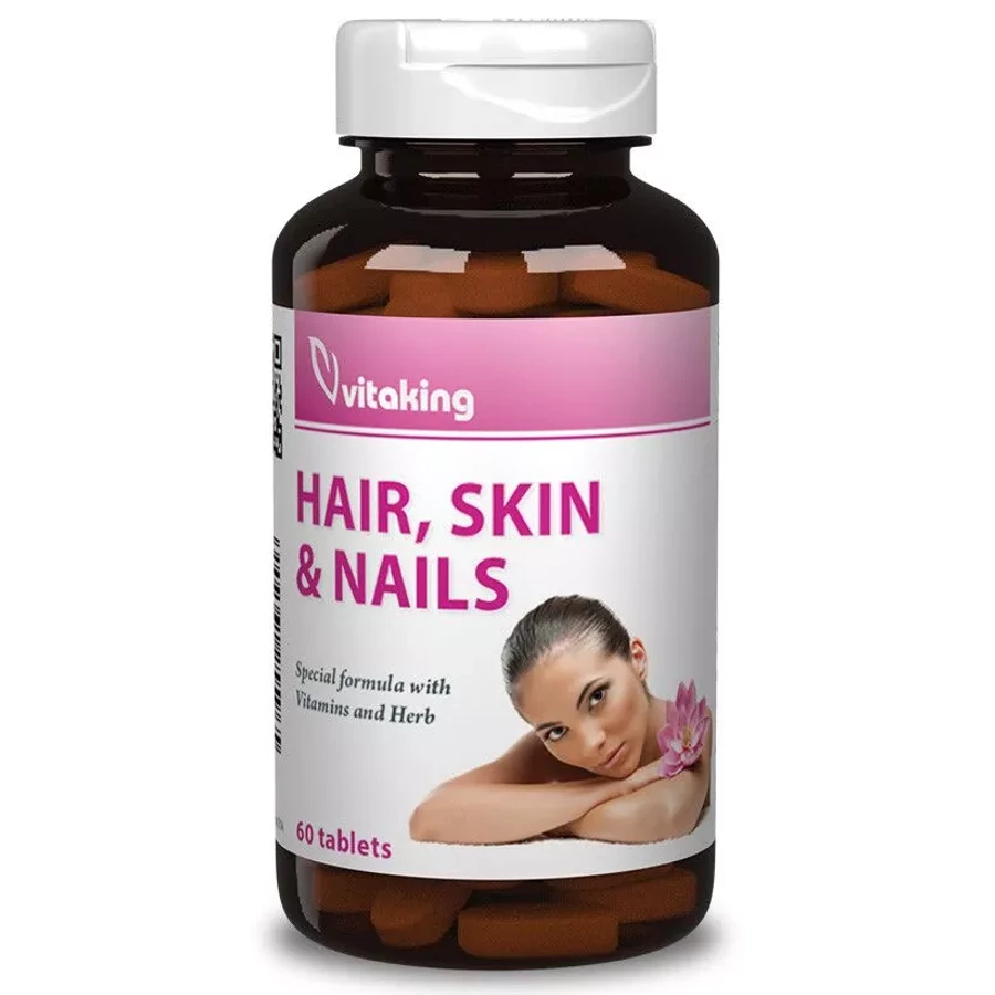A Vitaking Haj, bőr, köröm komplex készítmény speciálisan a szép és egészséges haj, bőr, köröm megtartására szolgáló készítmény. Tartalmaz többek között kolint, inozitolt, l-cysteint, mezei zsurlót és MSM-et is. A mezei zsurló javítja a bőr, a haj és a köröm állapotát, elősegíti a haj növekedését és erősödését.